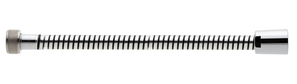 Ce flexible de douche est destiné à l’alimentation en eau chaude ou froide après la robinetterie. Son tube en PVC noir, renforcé par une spirale argent et un recouvrement cristal, offre une excellente souplesse et une finition soignée. Il est équipé d’un raccord femelle cylindrique moleté 1/2" (15x21 mm) d’un côté et d’un raccord femelle à écrou conique auto-tournant 1/2" (15x21 mm). Les longueurs standards disponibles : 1000 mm, 1500 mm, 2000 mm.